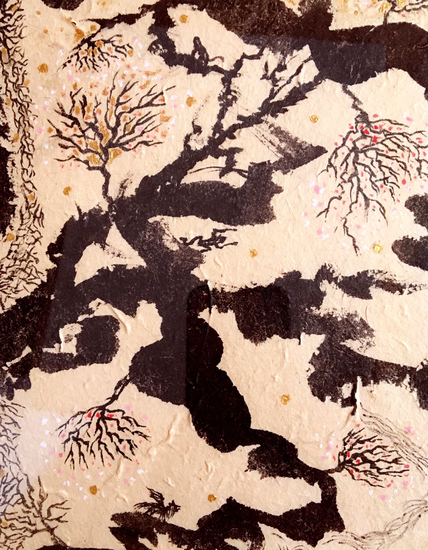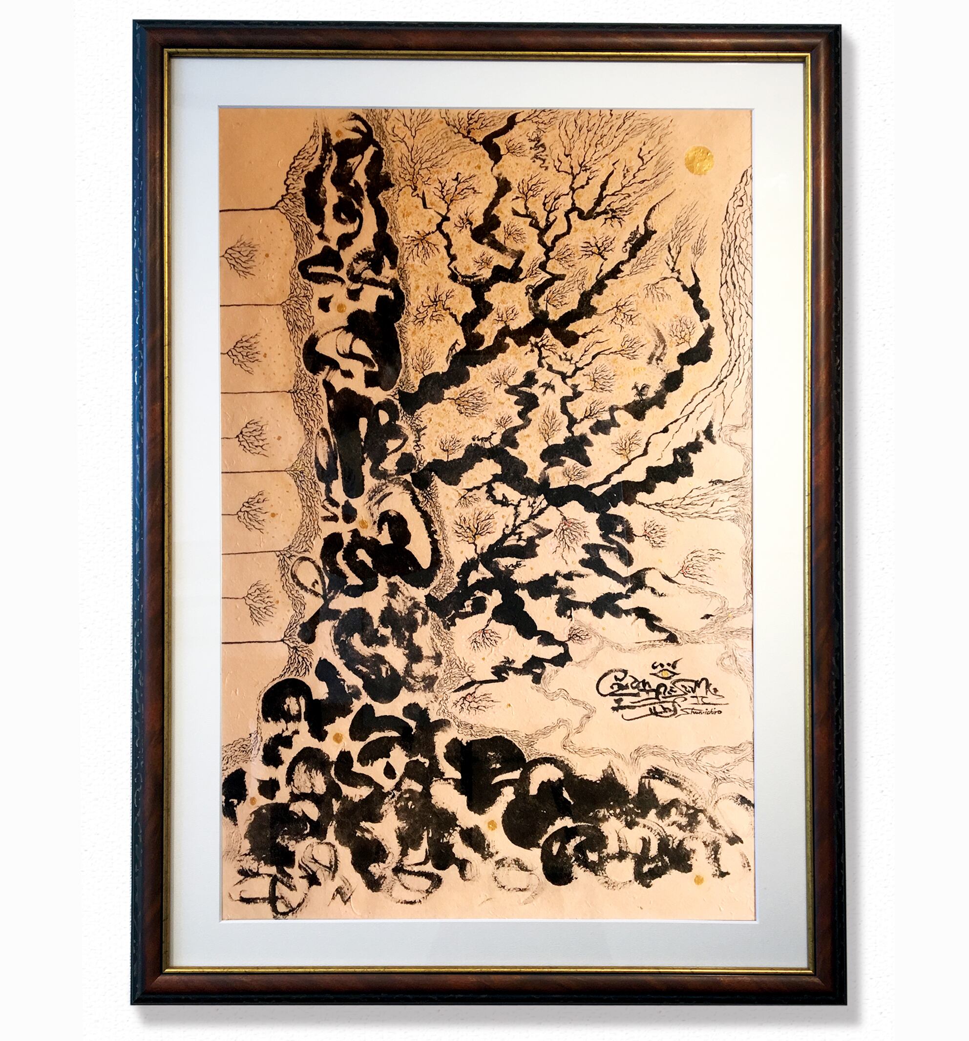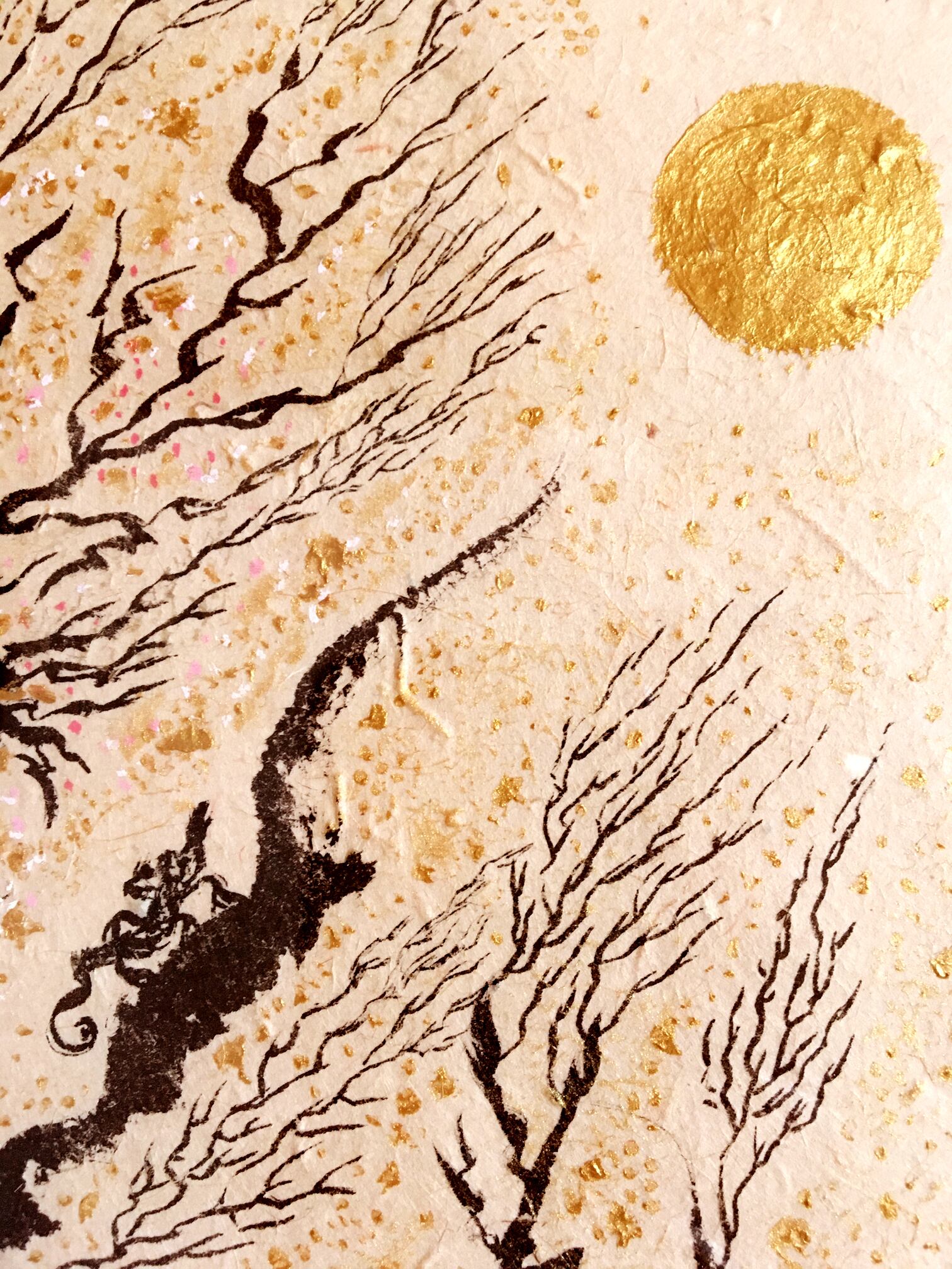 ◆ネパールの手すき紙・墨・アクリル金。1点ものです。