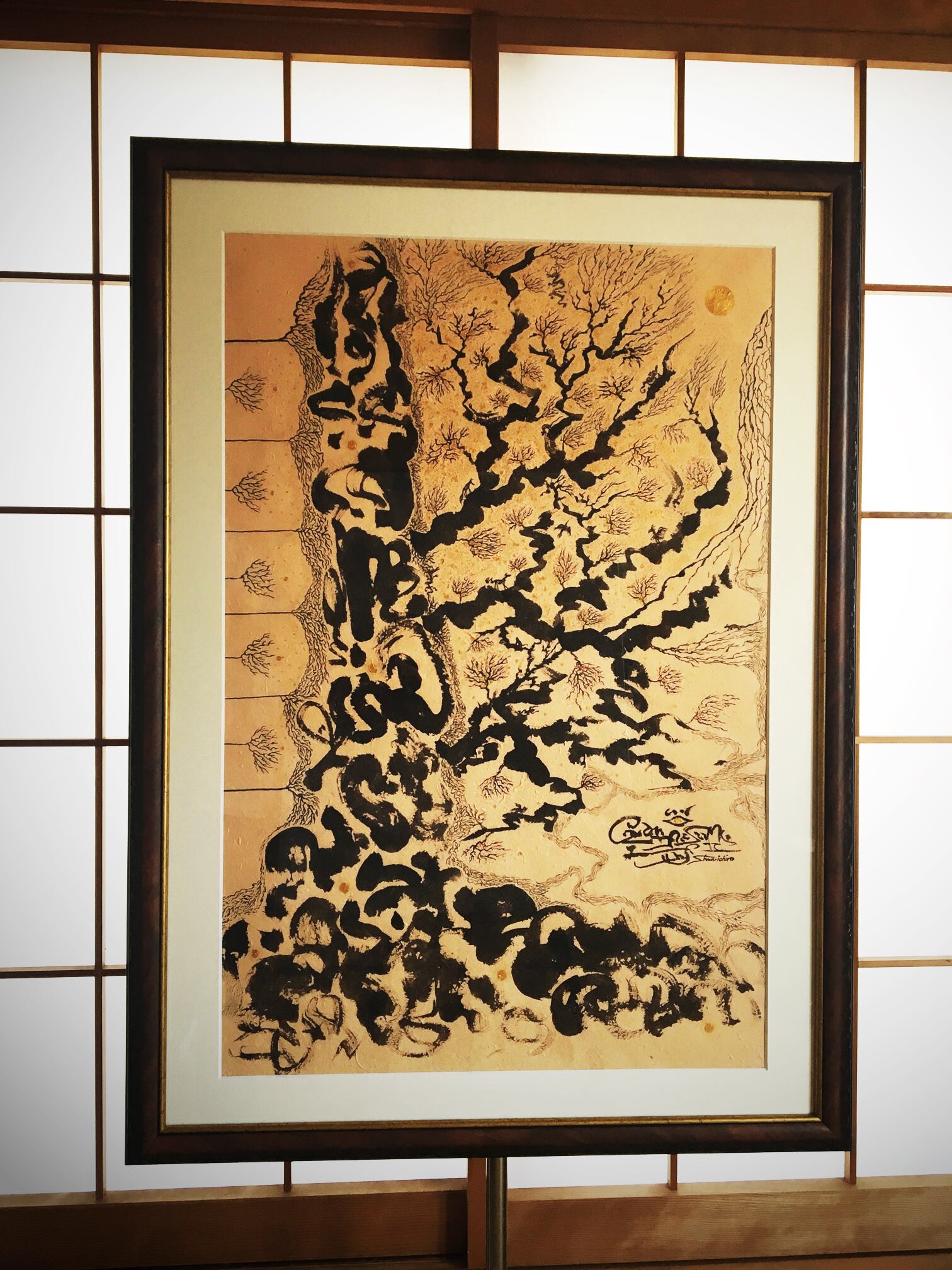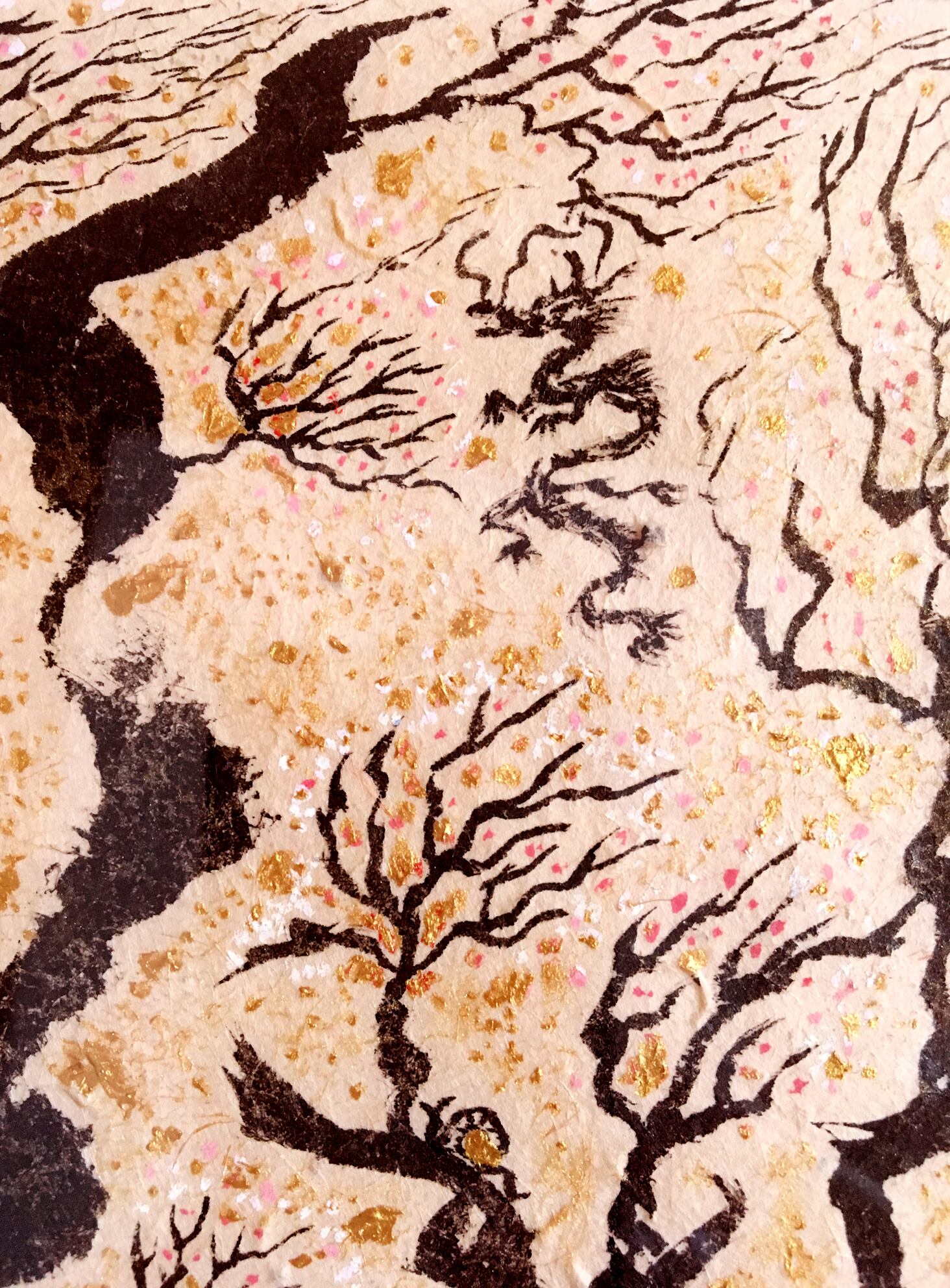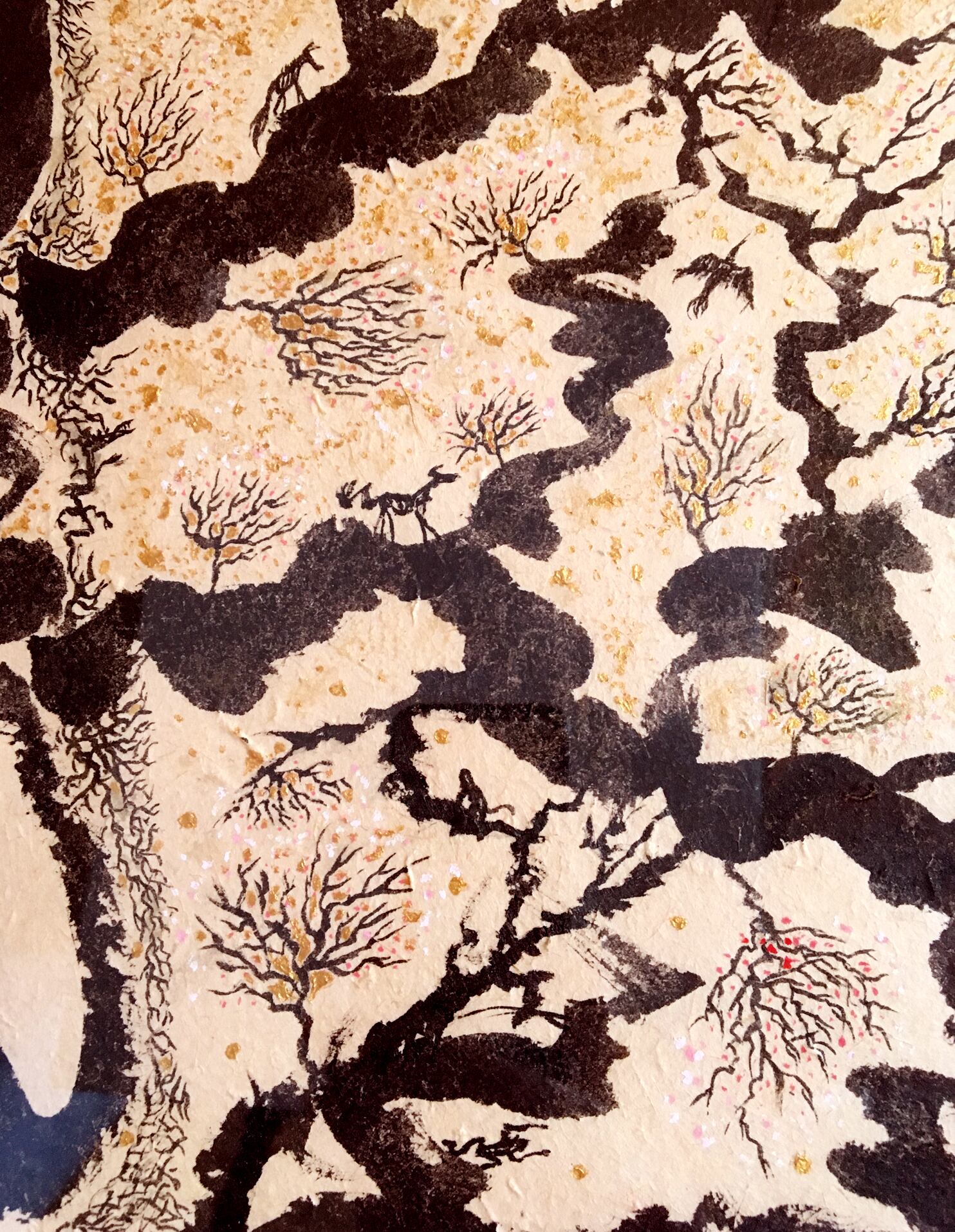 ◆ネパールの手すき紙・墨・アクリル金。1点ものです。