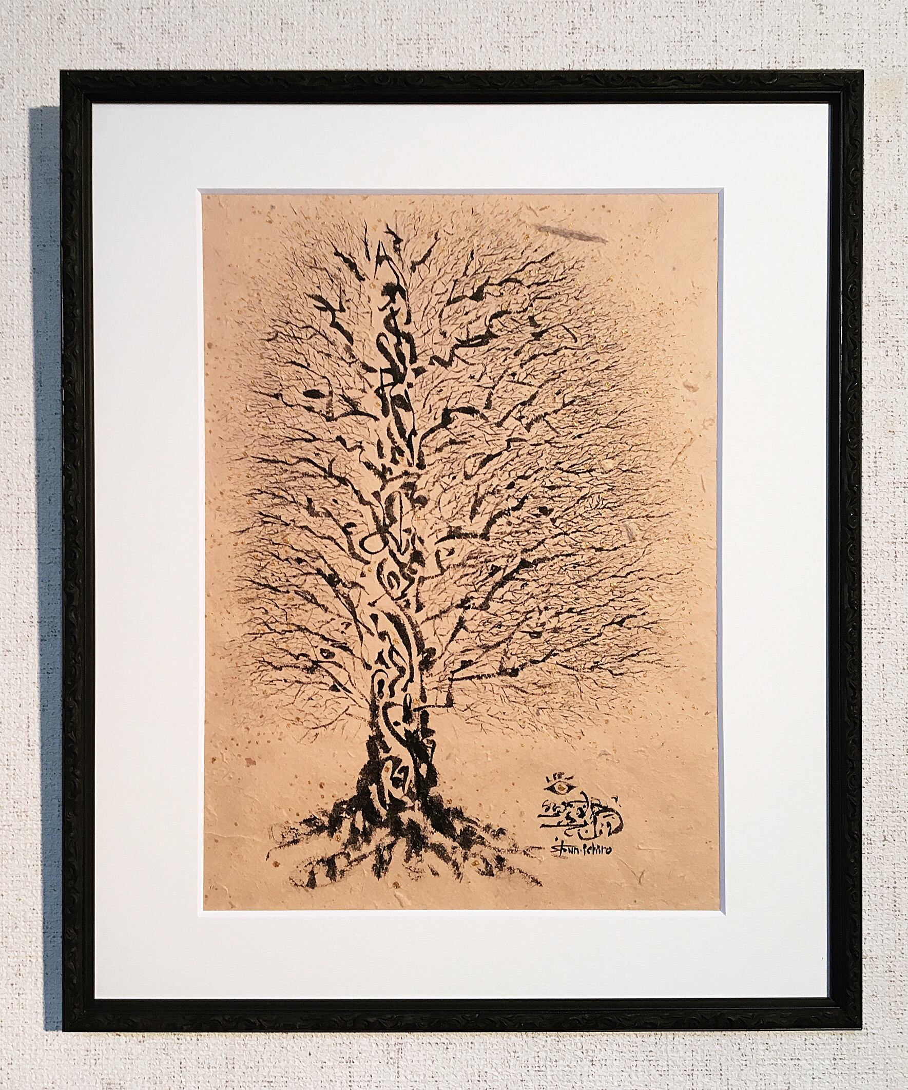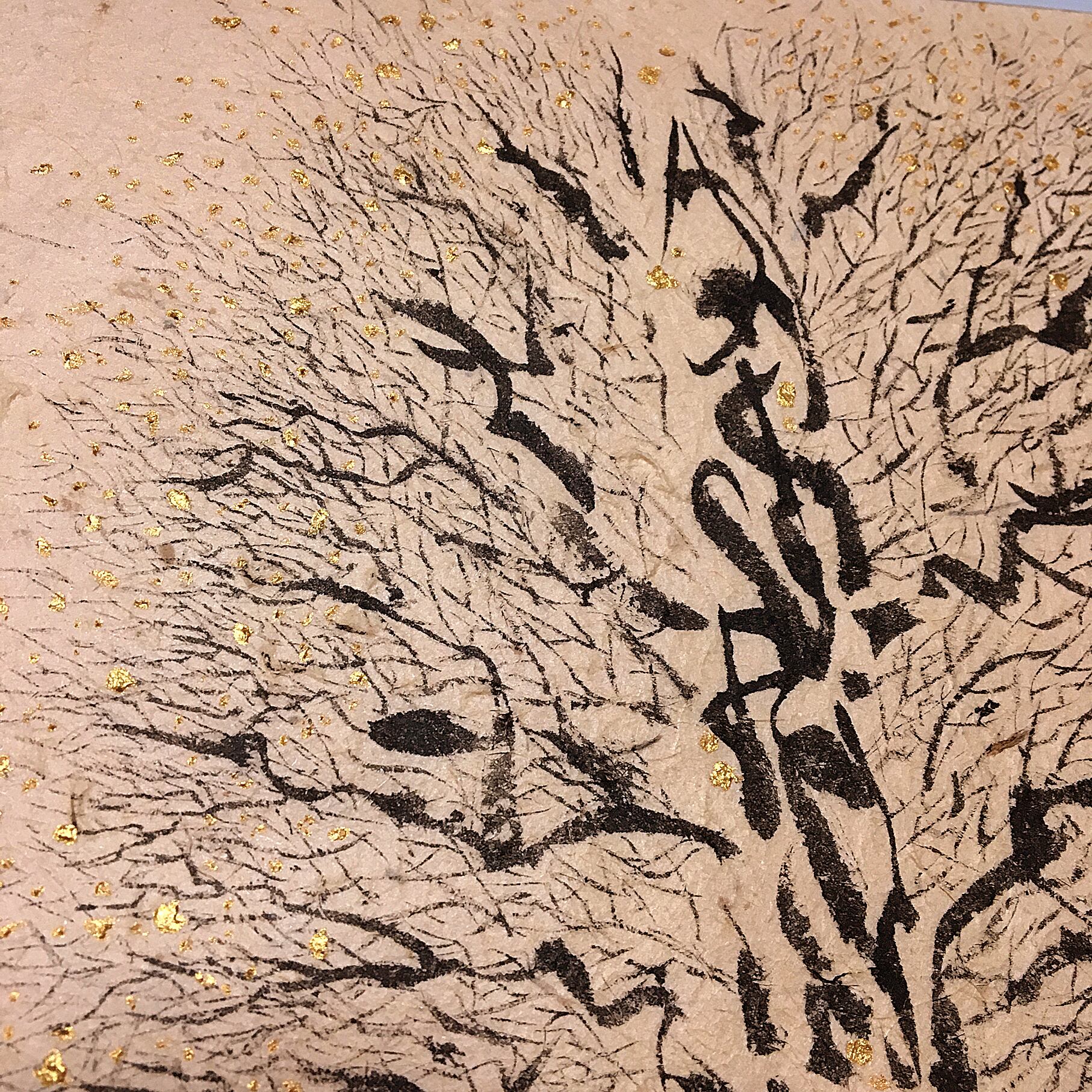 ◆ネパールの手すき紙に墨・金で描いた作品。1点もの。