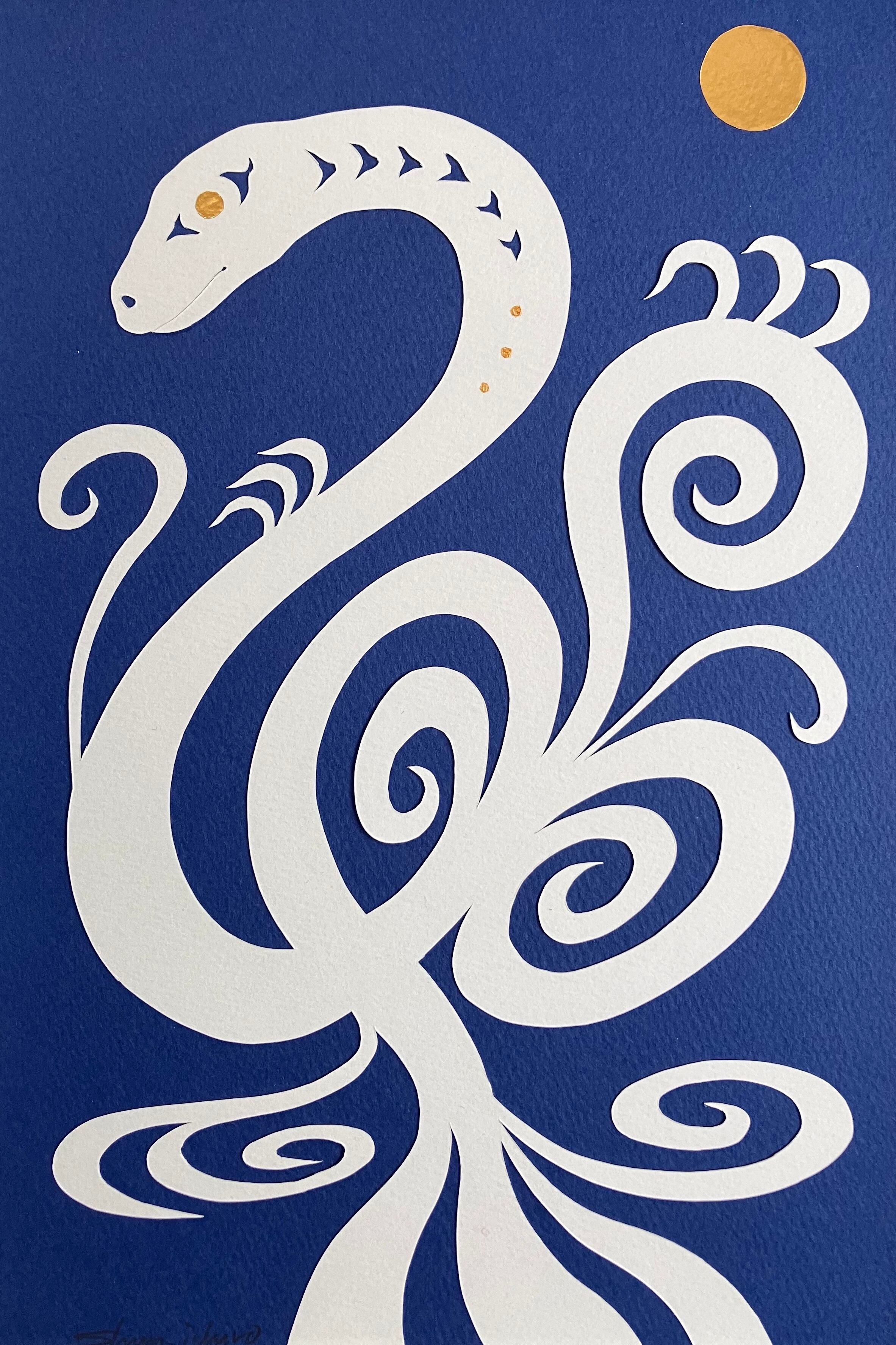 しなやかで優美な白蛇の切り絵